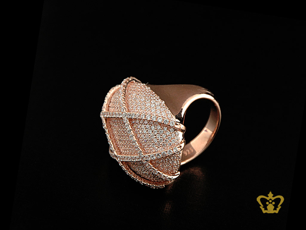 Chic rose gold color designer cross pattern ring inlaid with crystal diamonds lovely gift for her