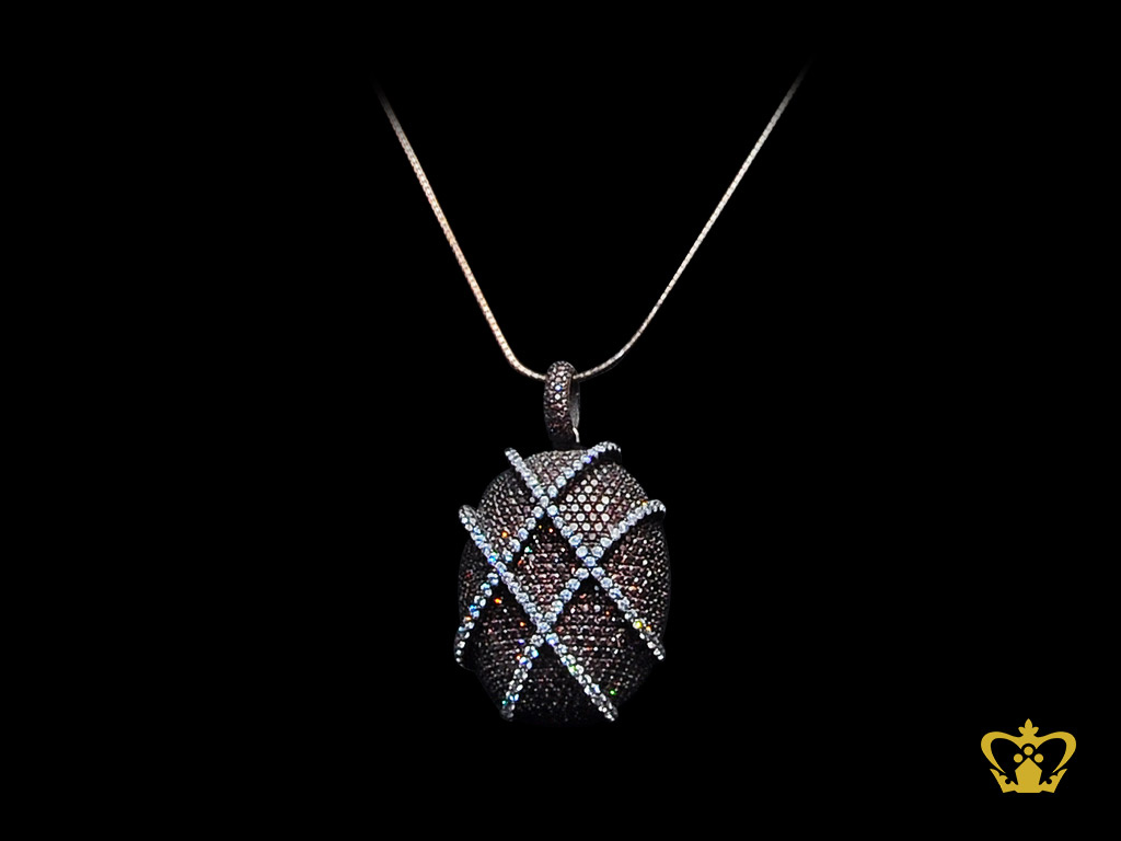 Chic-oval-designer-cross-pattern-pendant-with-brown-sparkling-crystal-diamonds-elegant-gift-for-her Product