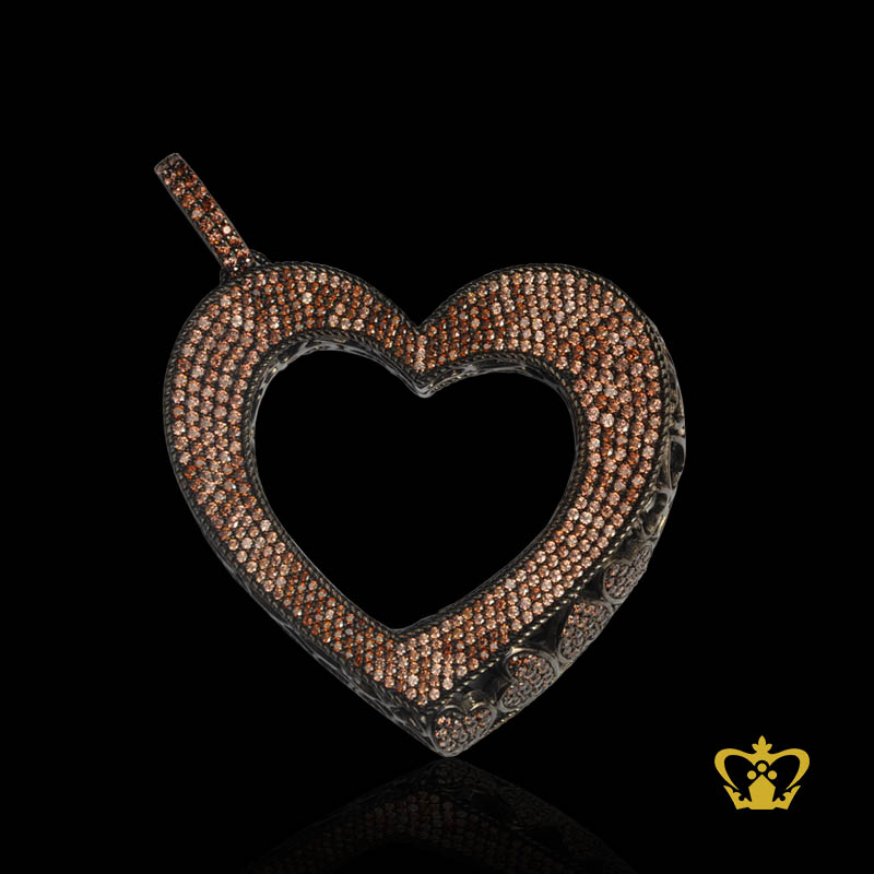 Heart pendant embellished with brown sparkling crystal diamond gorgeous gift for her