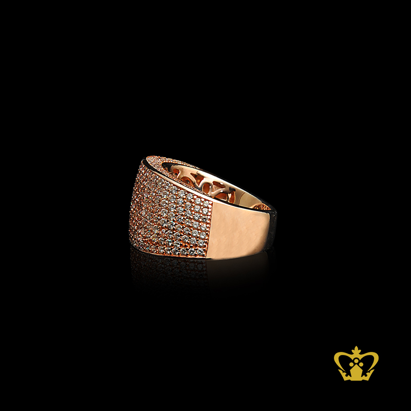Rose gold color ring inlaid with crystal diamonds lovely gift for her