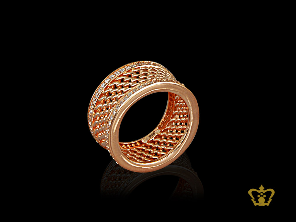 Opulent luxurious rose gold color ring inlaid with crystal lovely gift for her