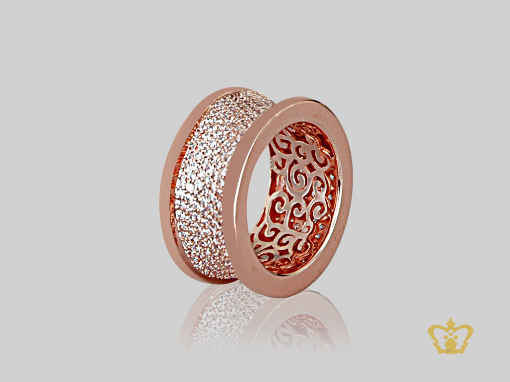 Graceful stylish rose gold color ring inlaid with exclusive clear crystal diamonds lovely designer gift for her