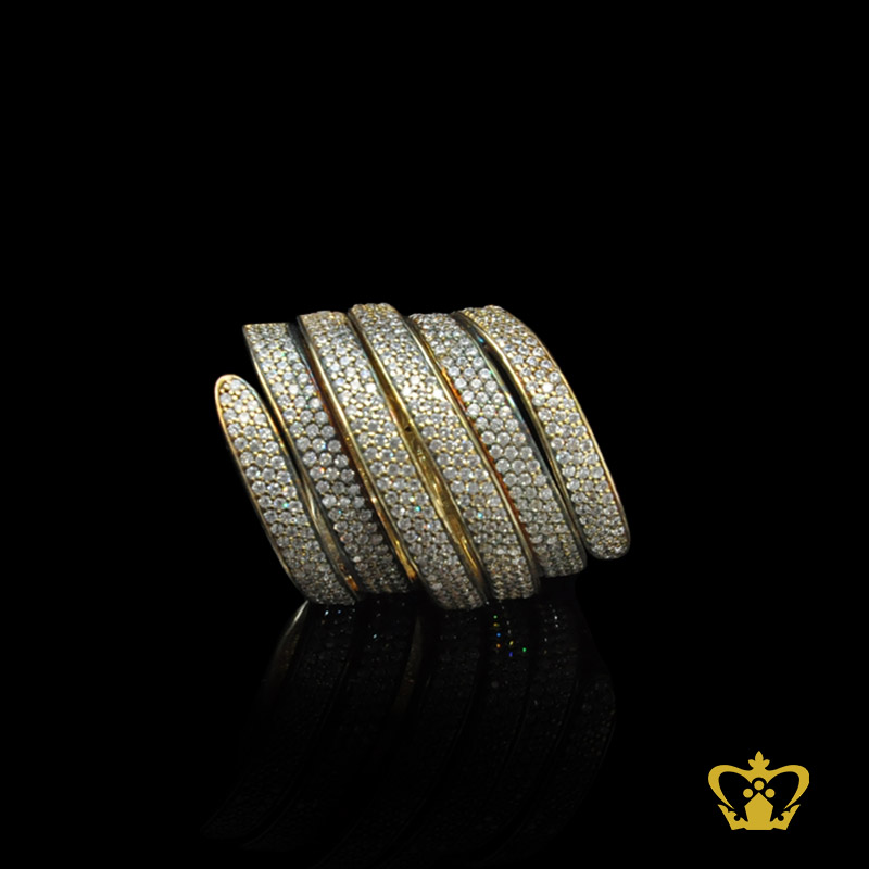 Golden opulent luxurious designer spiral ring beautifully inlaid with crystal diamonds lovely gift for her