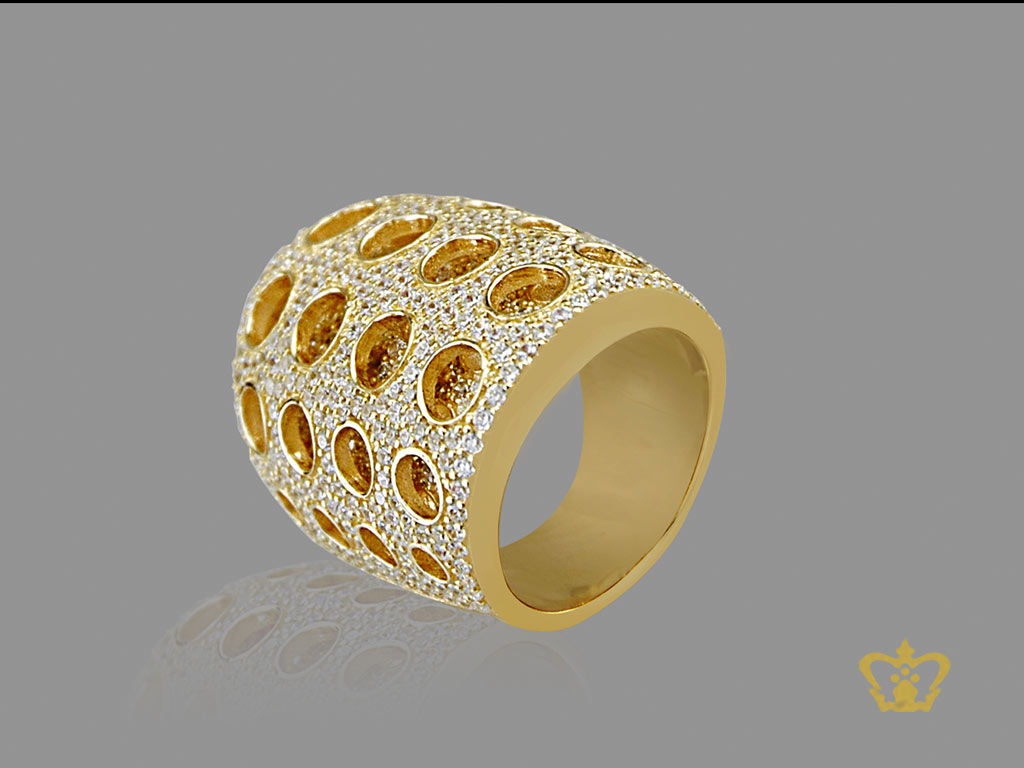 Glitzy-gold-color-designer-ring-inlaid-with-crystal-diamonds-lovely-gift-for-her Product