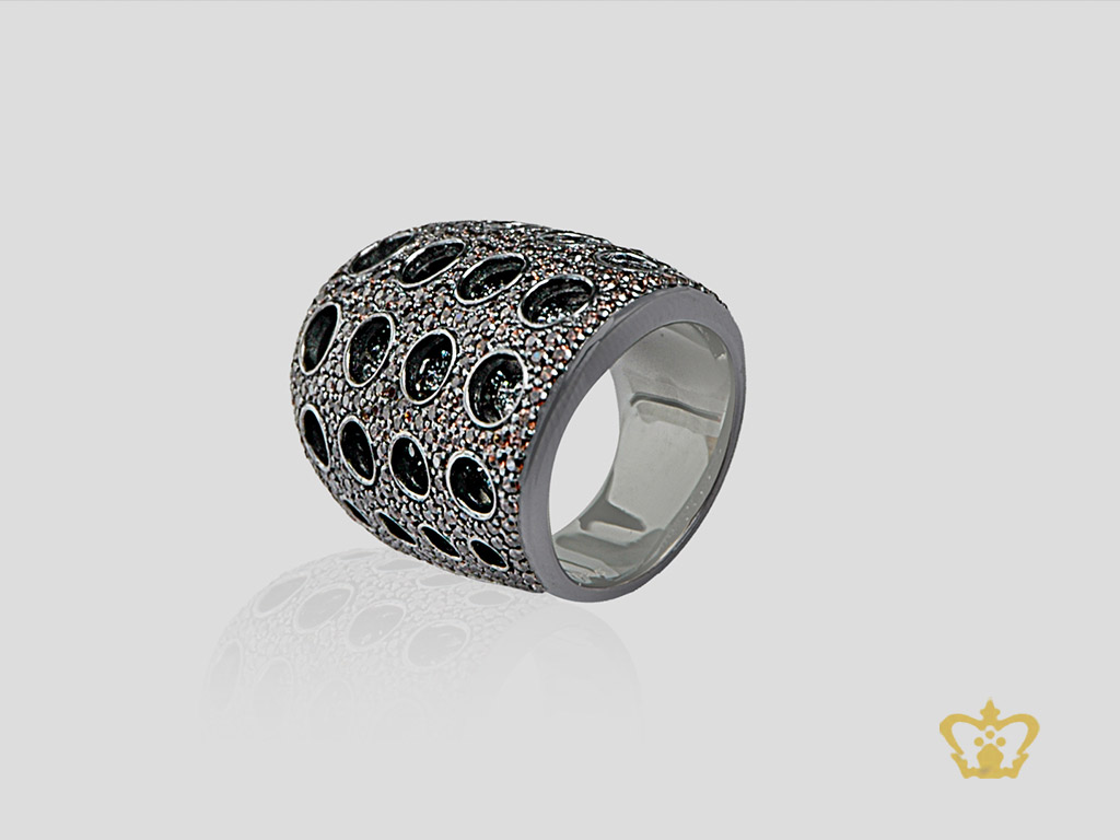 Ritzy-brown-crystal-inlaid-designer-mystic-silver-ring-elegant-gift-for-her Product