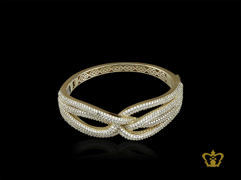 Ornamented-golden-bracelet-embellished-crystal-diamond-opulent-gift-for-her Product