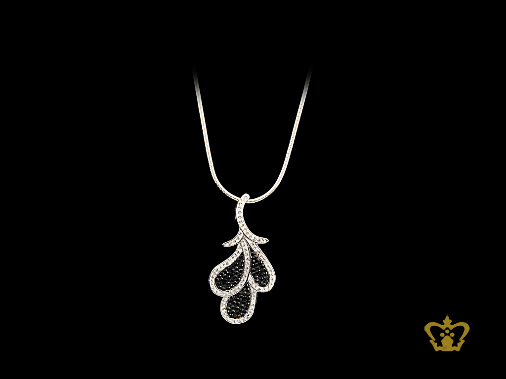 Beautiful silver leaf pendant inlaid with black and clear crystals diamond exquisite jewelry gift for her