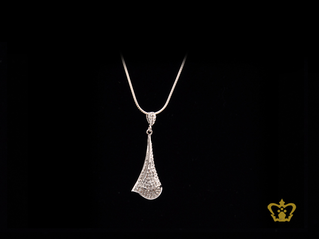 Beautiful silver leaf pendant inlaid with crystals exquisite designer jewelry gift for her