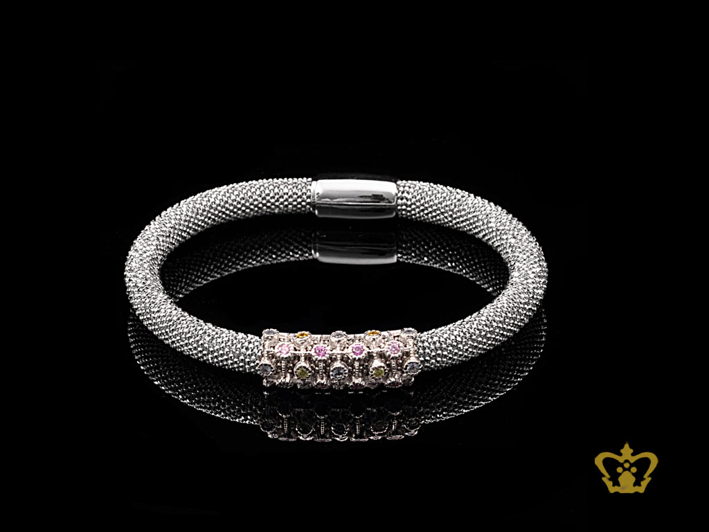 Splendid-silver-bangle-inlaid-with-multicolor-crystal-diamond-lovely-gift-for-her Product Product Product Product