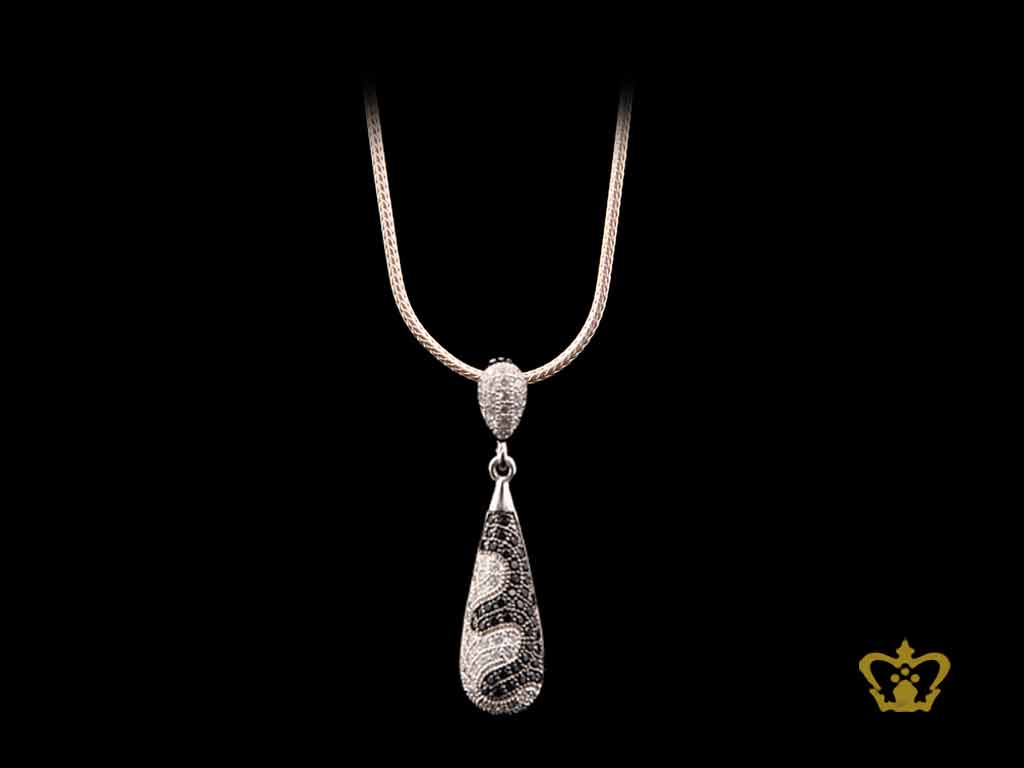 Classy-silver-drop-pendant-inlaid-with-shiny-black-and-clear-crystal-diamond Product