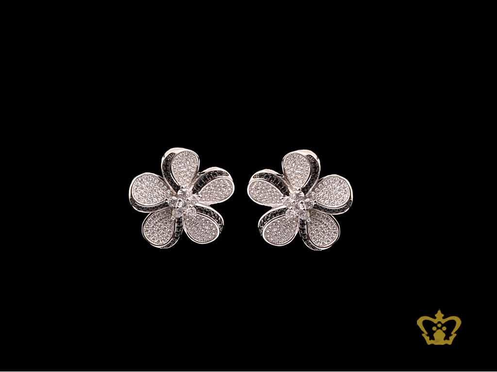 Flower-earring-embellished-with-black-and-clear-crystal-diamond Product