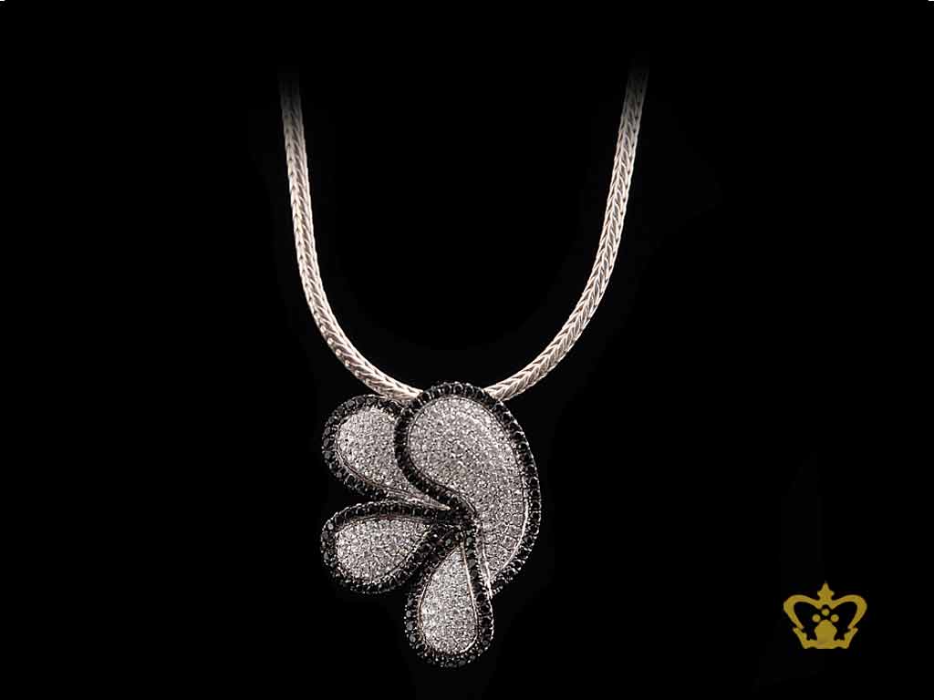 Flower-pendant-embellished-with-sparkling-black-and-clear-crystal-diamond-gorgeous-gift-for-her Product