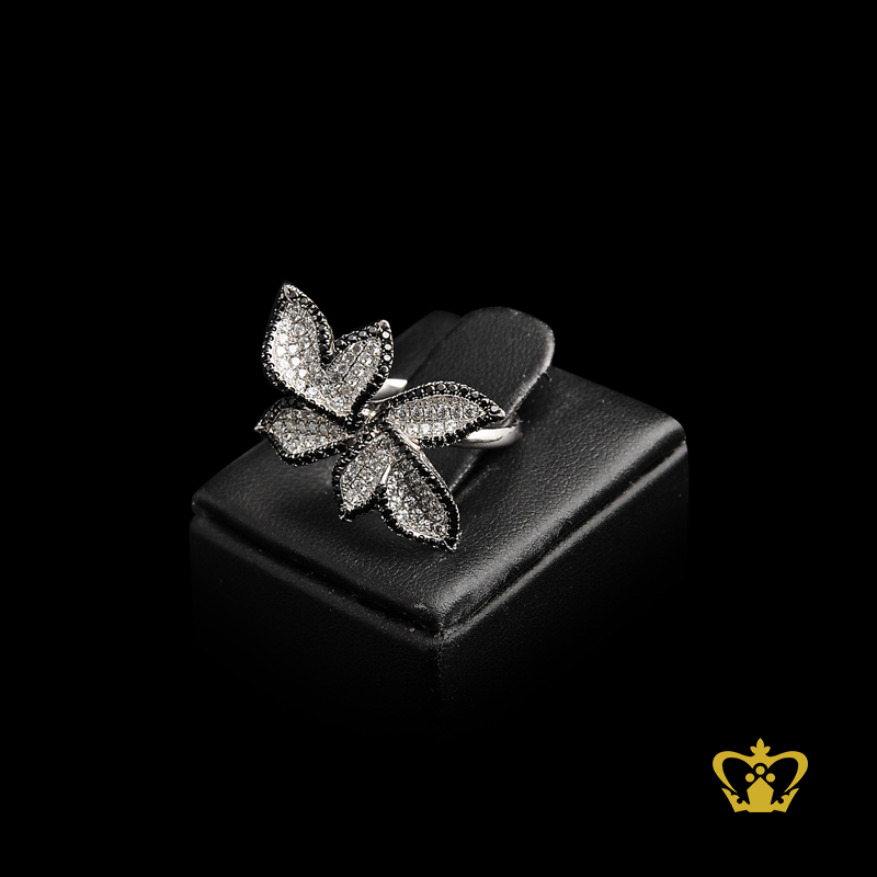 Lovely-flower-ring-inlaid-with-clear-and-black-crystal-alluring-gift-for-her Product Product