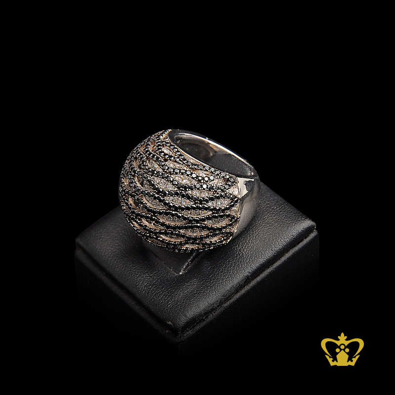 Stylish elegant embellished ring with black and clear crystal diamonds sterling silver opulent gift for her