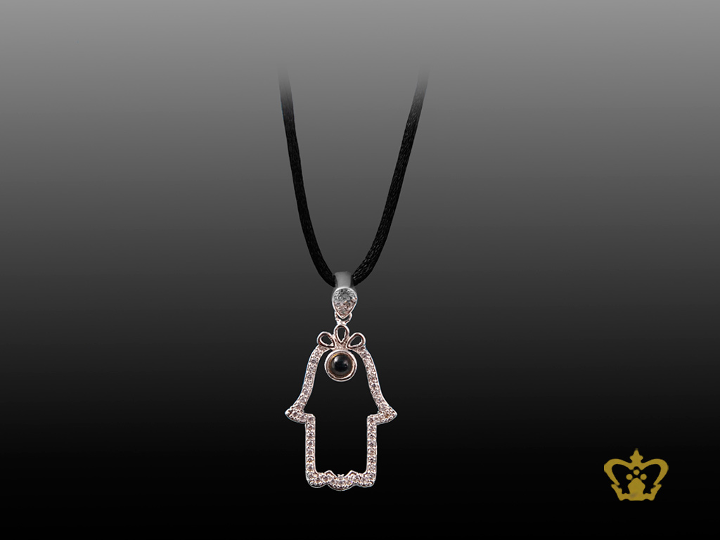 Rhodium-plated-graphic-stone-pendant-embellish-crystal-diamond-and-a-hidden-text-Arabic-word-calligraphy-Ayat-Al-Kursi Product