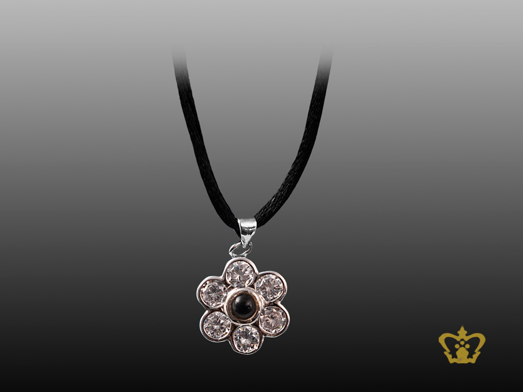 Rhodium plated graphic stone pendant embellish crystal diamond and a hidden picture Goddess Lakshmi