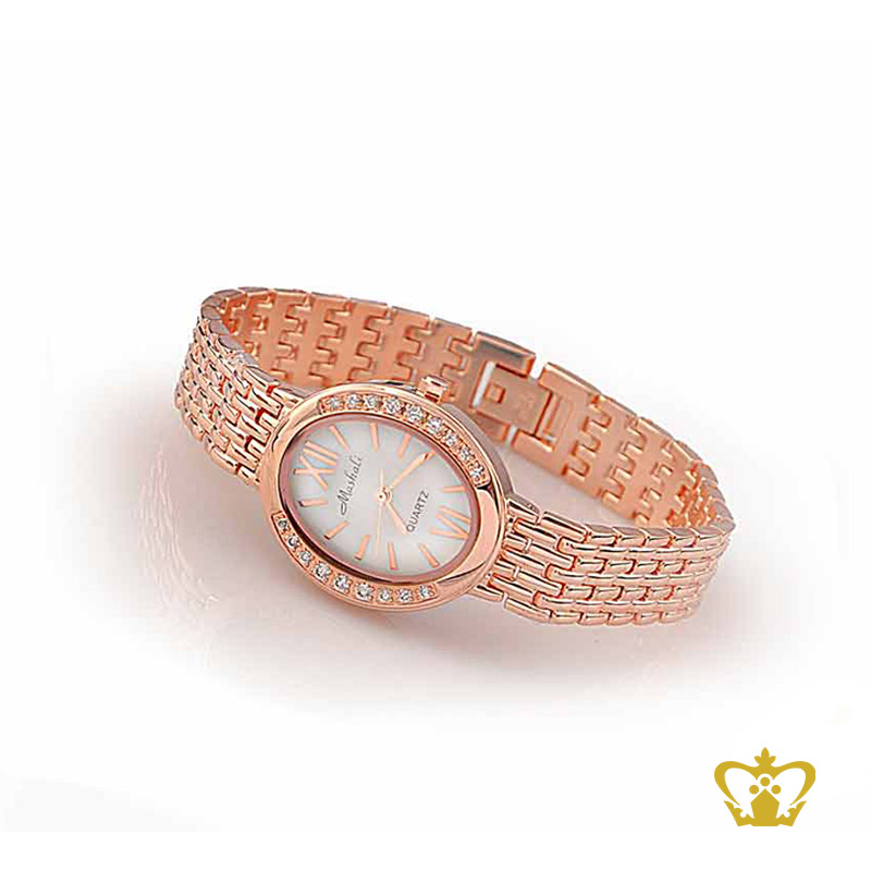 Beautiful-oval-shape-rose-gold-woman-watch-embellish-with-crystal-diamond Product