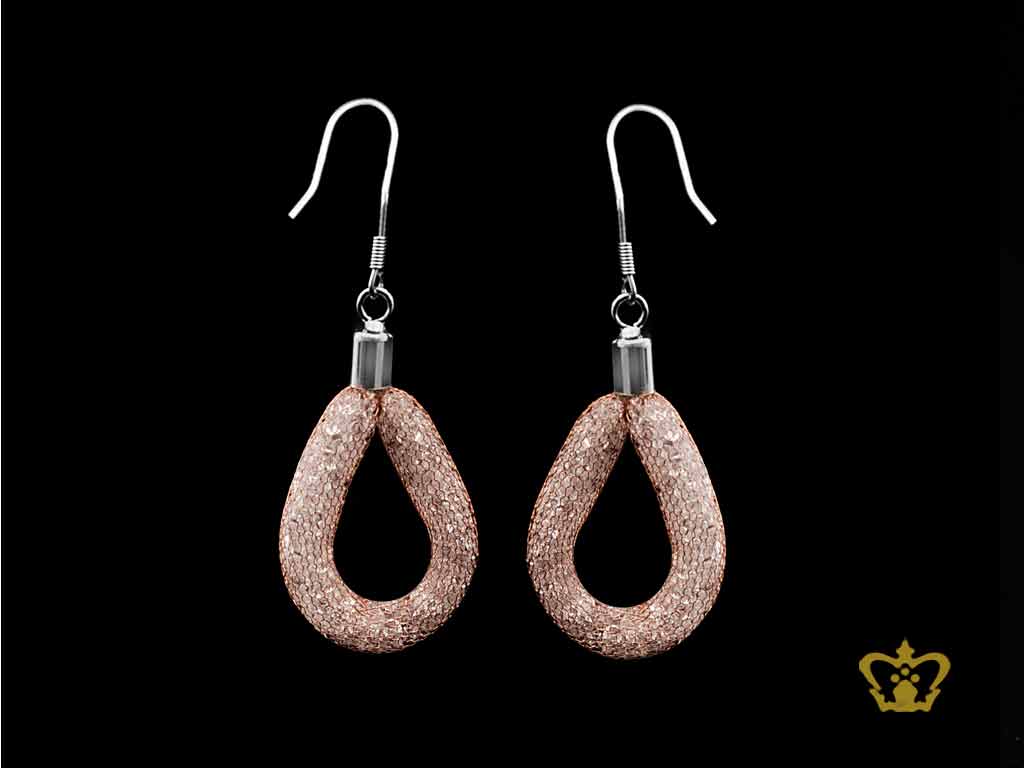 Mesh-tube-pink-gold-drop-earring-fish-hook-filled-with-white-crystal-stone-exquisite-jewelry-gift-for-her Product