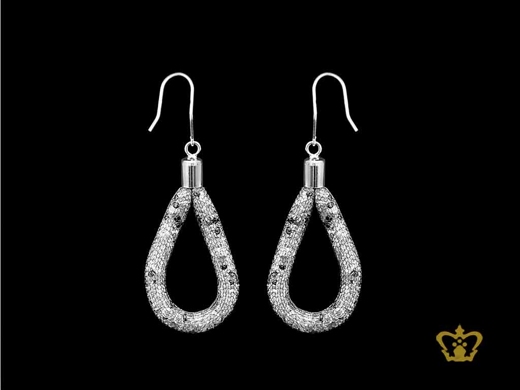 Mesh-tube-fish-hook-drop-earring-filled-with-white-and-black-crystal-stone-exquisite-jewelry-gift-for-her Product