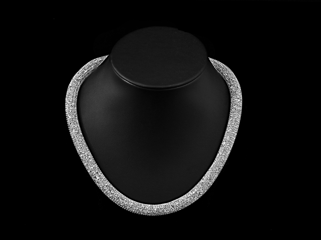 Mesh-tube-necklace-gray-color-filled-with-white-and-crystal-stone-exquisite-jewelry-gift-for-her Product