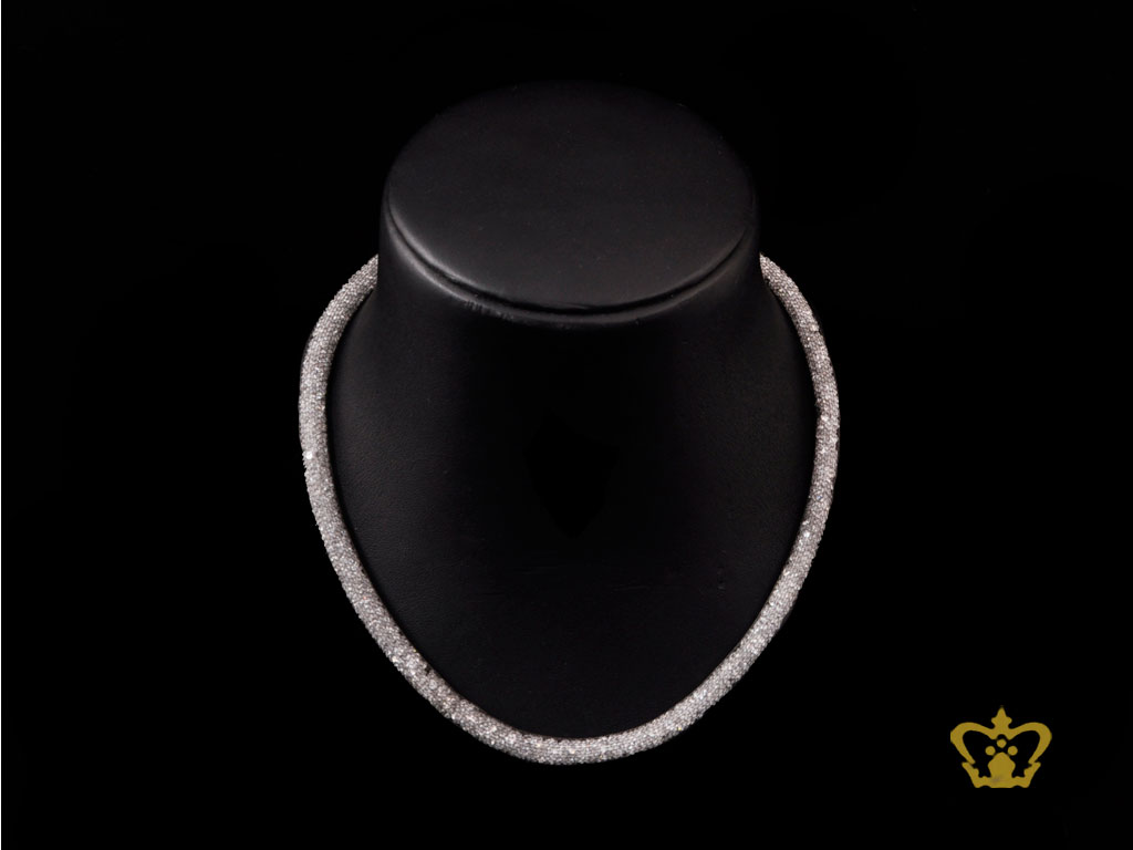 Mesh-tube-necklace-filled-with-white-and-gray-crystal-stone-exquisite-jewelry-gift-for-her Product