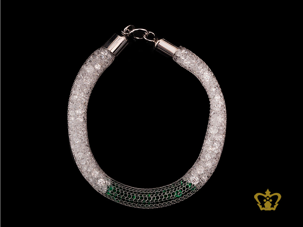 Mesh tube bracelet filled with white and green crystal stone exquisite jewelry gift for her