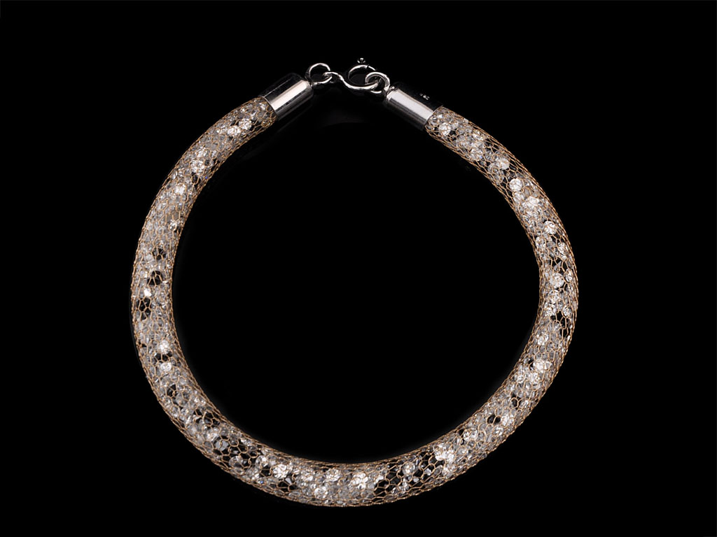 Mesh tube golden color bracelet filled with white and black crystal stone exquisite jewelry gift for her