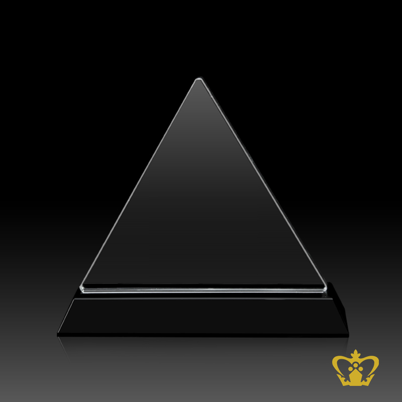Crystal triangle plaque stands on black crystal base customize text engraving