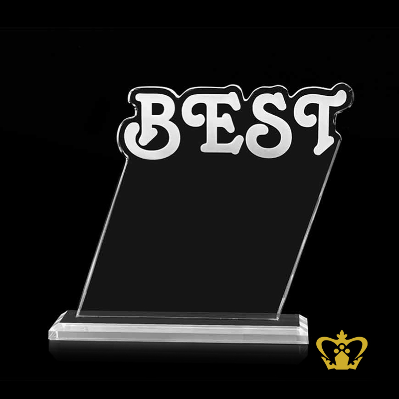 Personalize-crystal-cutout-trophy-theme-BEST-with-clear-base-customized-text-engraving-logo Product Product