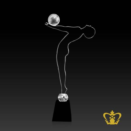 Personalized-crystal-man-cutout-with-globe-on-hand-stands-on-black-base-customize-text-engraving-logo Product Product