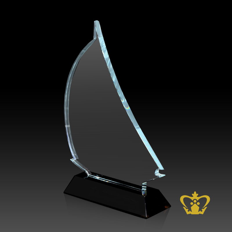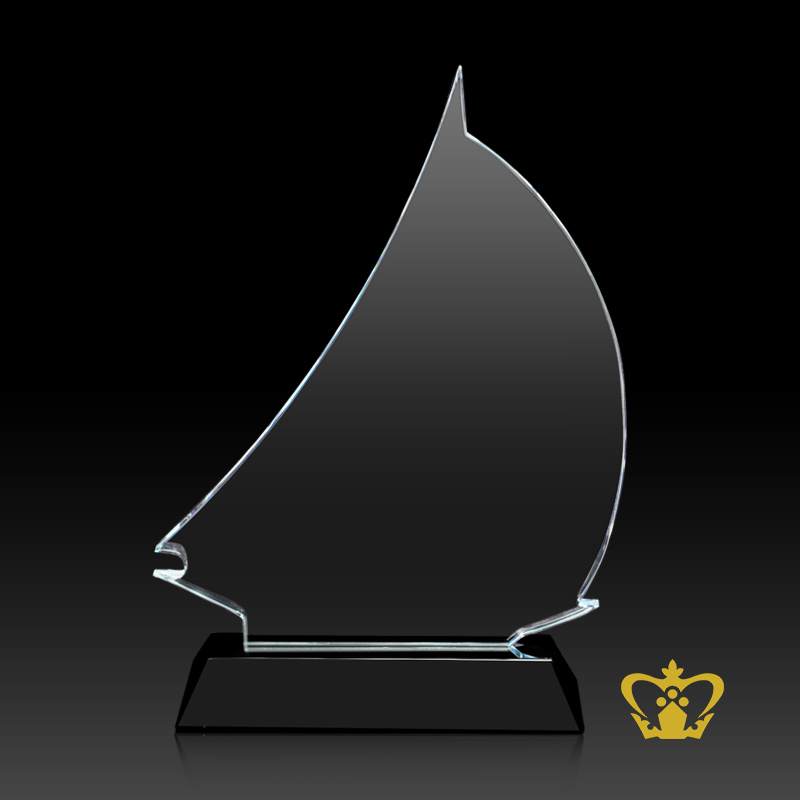 Personalized crystal yacht plaque with black base customized engraved logo text