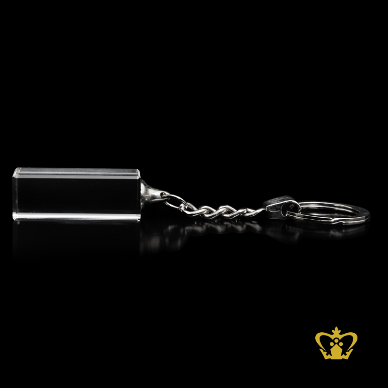 The crystal Keychain measures 15 x 15 x 40 mm & can accommodate 3D & 2D images. You can personalize this crystal keychain by engrave your own photo, logo, text, design or any ideas. Click on customize button and upload your image or text and buy online, you can also click on enquiry button we will respond as soon as we can. To produce a 3D crystal, firstly our designers transform any of your ordinary photographs into amazingly 3D images. Then it imprinted or engraved in crystal keychain using our precision laser technology in crystal cube. 3D crystal keychain, cube or blocks are often used for 3D or 2D crystal portraits and given as gifts for wedding, birthdays, Valentine's Day, wedding, mother's day, father's day, graduation, remembrance, memorial or anniversary gift. Whether you are shopping for your mom, sister, or wife this holiday season, give them a gift that's as unique and thoughtful as they are. There are also great corporate or business gifts for recognition awards, promotional paperweights and event mementos. Corporate logos laser engraved inside of the crystal make elegant client and employee gifts.