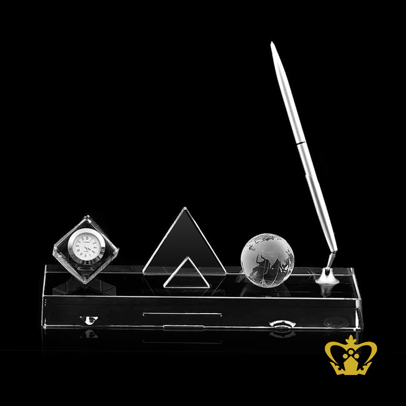 Desktop Business Card Holder Globe Clock Desktop Pen Holder - Pencil Holder For Desk