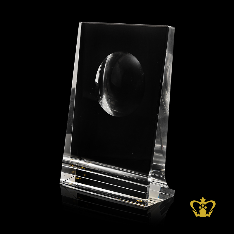 Handcrafted Crystal Rectangular Trophy with Circle and Stand Customized Logo Text