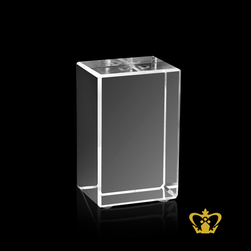 You can personalize this crystal cube or rectangular crystal block by engrave your own photo, logo, text, design or any ideas. Click on customize button and upload your image or text and buy online, you can also click on enquiry button we will respond as soon as we can. To produce a 3D crystal, firstly our designers transform any of your ordinary photographs into amazingly 3D images. Then it imprinted or engraved in glass cube using our precision laser technology in crystal cube. 3D crystal cube or blocks are often used for 3D or 2D crystal portraits and given as gifts for wedding, birthdays, Valentine's Day, mother's day, father's day, graduation, convocation , remembrance, memorial or anniversary gift. There are also great corporate or business gifts for recognition awards, promotional paperweights and event mementos. Corporate logos laser engraved inside of the crystal make elegant client and employee gifts. These laser crystals accommodate 3D layered designs where text and image can be engraved at different depths in the crystal. You can add an optional light base and the interaction of the white LED light with the engraving creates bright and sparkling 3D keepsake.
