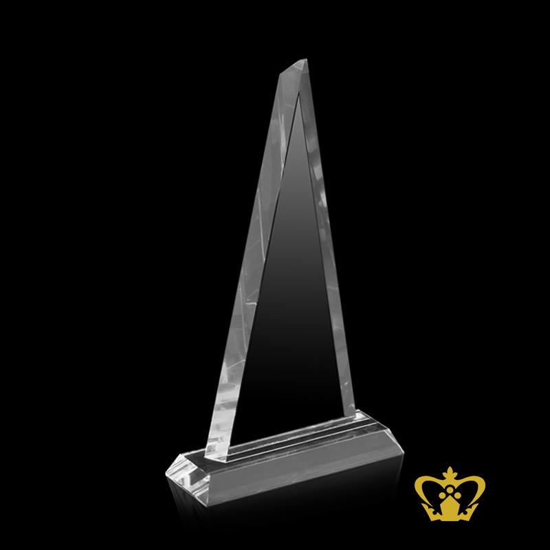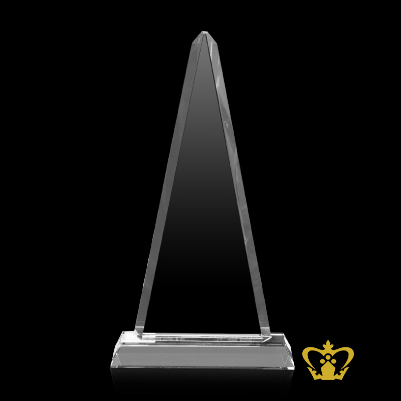 Crystal obelisk pyramid shape plaque with clear base customized logo text
