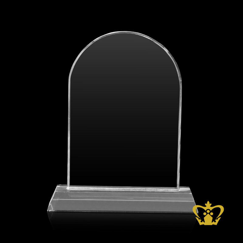 Handcrafted-crystal-mehrab-trophy-with-clear-base-customized-logo-text Product Product Product Product