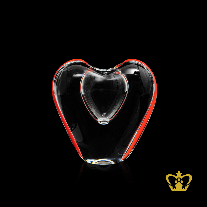 The beautiful heart vase is crafted out of crystal with subtle soft hints of ruby red hues.