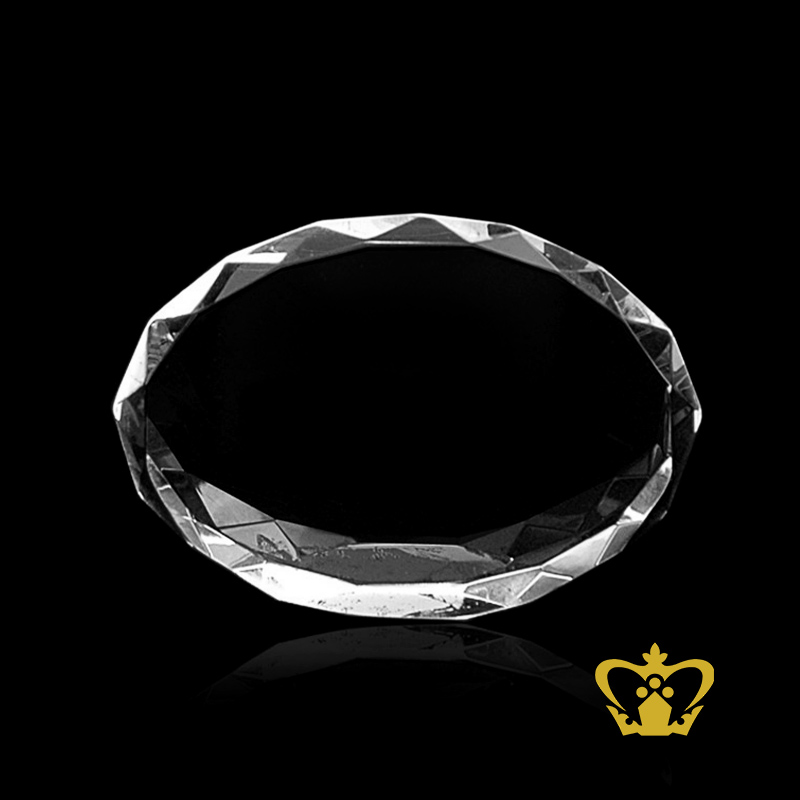 Personalized oval diamond cut crystal paper weight for desktop customized with your name designation logo