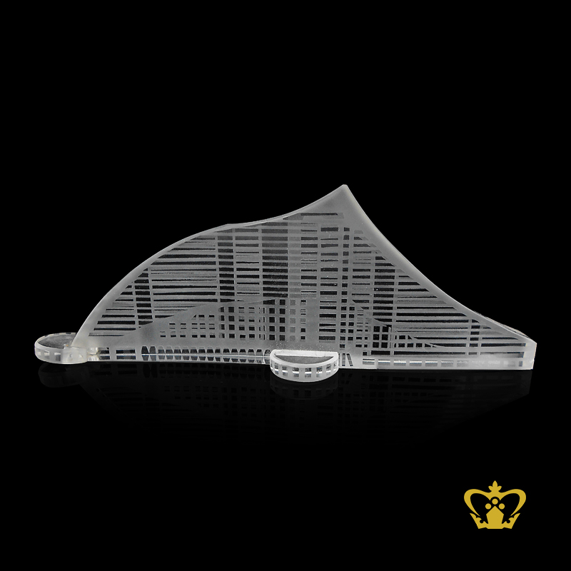 Handcrafted crystal replica of Jumeirah Beach Hotel custom logo text a famous hotel in UAE