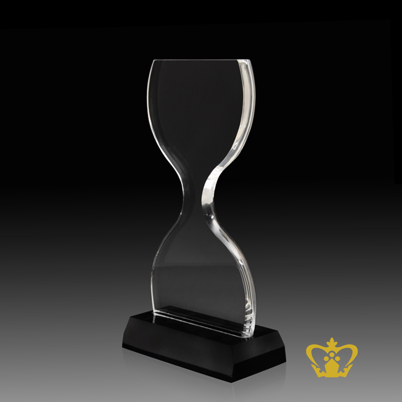 Handcrafted-Crystal-Timer-Trophy-With-Stand-On-Black-Base-Customized-Logo-Text Product Product Product Product