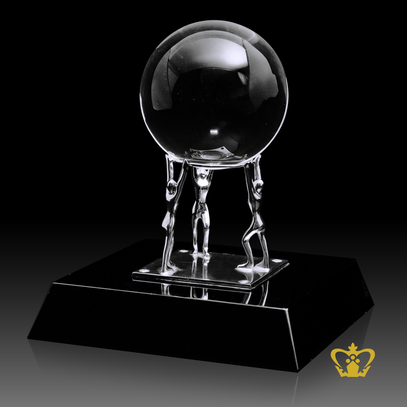 Custom-Made-Trophy-with-Three-Metal-Man-Embellish-with-Crystal-Sphere-Ball Product