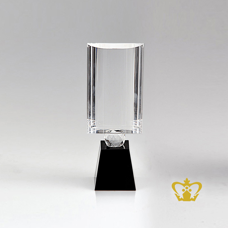 Half cylinder crystal trophy with crystal diamond and clear base customized logo text