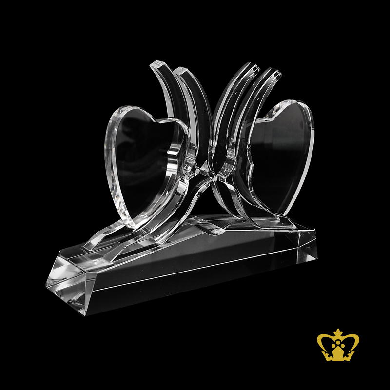 Crystal double heart shape 3D laser engraved couples with clear base together forever wedding valentine’s day anniversary gift