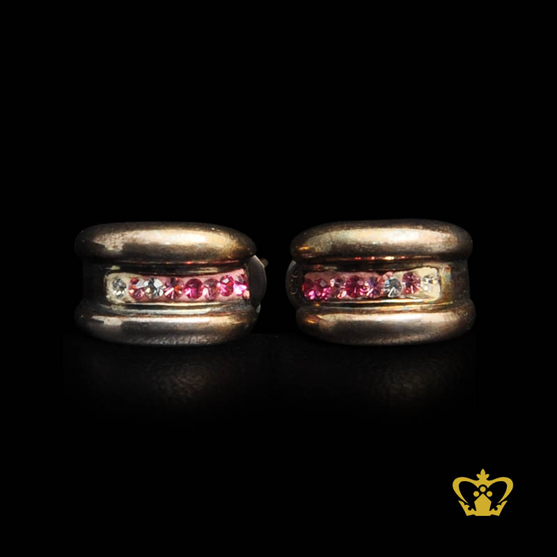 Arc shape ear top embellished with pink and clear crystal diamond gorgeous gift for her