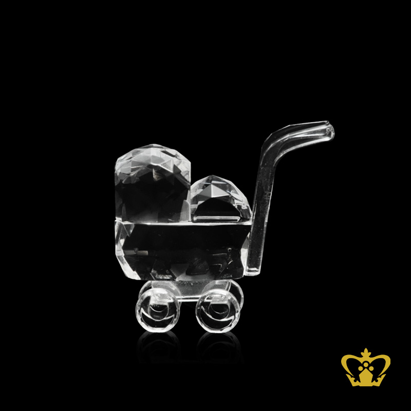 Manufactured artistic crystal replica of a trolley for a baby with intricate detailing