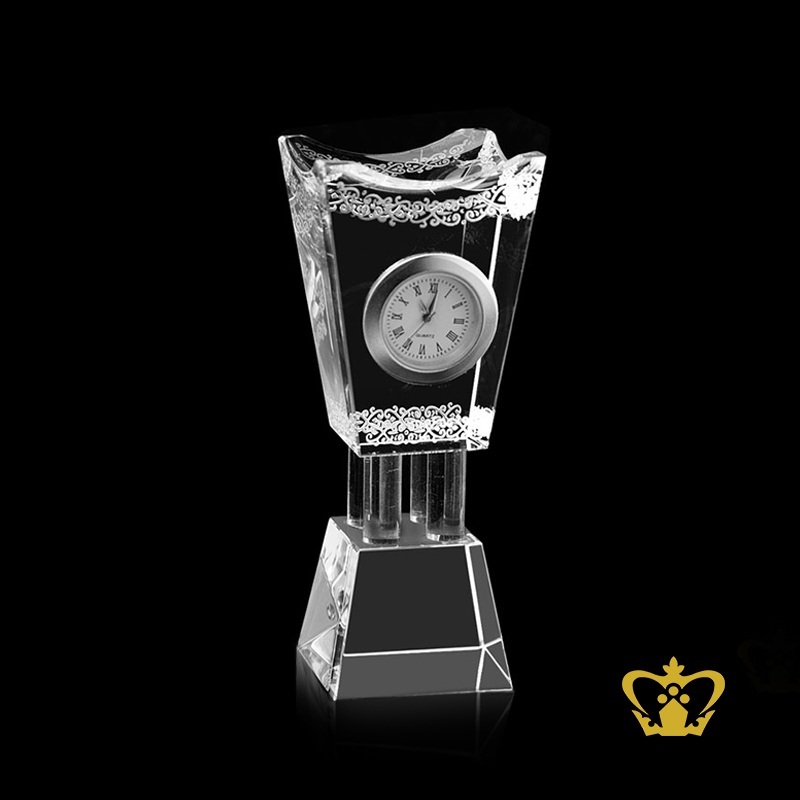 Crystal-Replica-of-Bakhoor-with-clock-Corporate-UAE-National-Day-Gift-Tourist-Souvenir-4-Inch-Customized-Logo-Tex Product Product