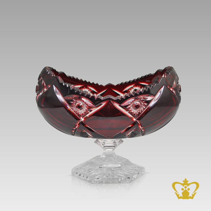 Classy-Charming-Scalloped-Edge-Ruby-Footed-Crystal-Bowl-Ornamented-With-Modish-Handcrafted-Leaf-Pattern-Decorative-Gift Product Product Product