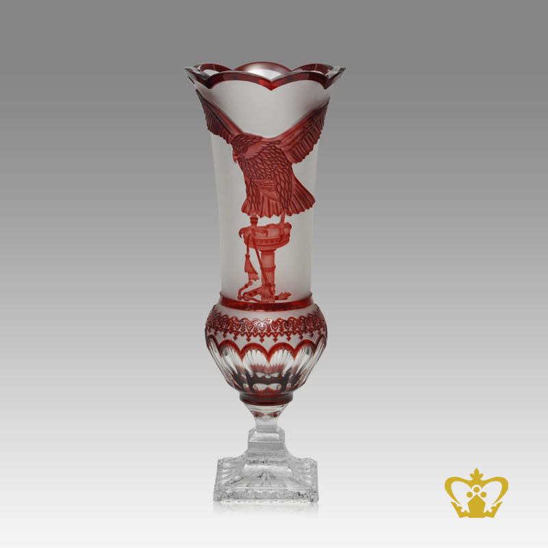 Crystal decorative vase with falcon engraved UAE traditional souvenir and national day gift
