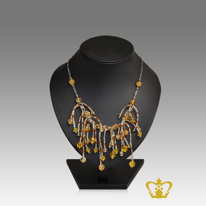 Citrine dangling necklace embellished with yellow crystal stone and pearl